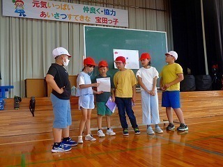 5月と9月の合計4週間を一緒に過ごした教育実習生の先生とのお別れ会を行いました。今までの感謝の気持ちと大学でも頑張ってねという思いを伝えたいと考え、子どもたちは「がんばってね会」とネーミングし、先生には内緒のプロジェクトとして休み時間も使いながら準備を進めていました。王様ドッジボールやリレー、メッセージカードのプレゼントと、子どもたちの思いが込められた内容に、実習生の先生も大変喜んでいました。