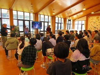 11月27日(木)、JAXAの元職員の早川様を講師にお迎えし、3年生以上の子どもが参加して、宇宙についての学習会を行いました。、早川様から、宇宙の惑星やJAXAで取り組まれていたロケット開発についてのお話をしていただきました。子どもたちにとって、初めて知ることや難しい言葉もありましたが、たくさんの貴重な画像を見せていただきながら分かりやすく教えてくださいました。積極的に質問したり感想を伝えたりする姿も見られ、宇宙への関心を深めることができました。
