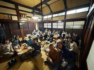 12月10日(水)、6年生は、総合の学習で名立区森町内にある空き家をお借りしています。今回は、「冬に空き家で温まる会」を行いました。空き家にある囲炉裏に自分達で作った味噌汁の鍋をかけて温め、おにぎりと一緒に食べました。冬のひと時、古民家ならではの生活を体験し、心も体も温まりました。