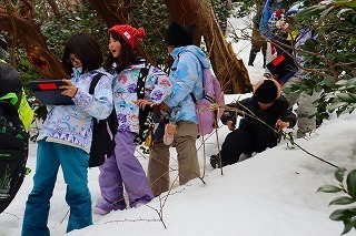 3、4年生は冬の宇山探検に出かけました。雪の上に動物の足あとや毛を見付けて驚くと同時に、雪の中で動物たちがたくましく生きていることに気付きました。また、サクラの芽を見付けて春が近づいていることを感じたり、冬の日本海の絶景に感動したりと、様々な発見がありました。