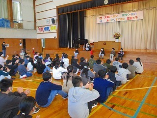 3月18日(水)に後期の終業式を行いました。各学年の代表の児童が一年間の振り返りを発表しました。勉強や行事で頑張ったことや縦割り班活動や行事での思い出など様々でしたが、どの子にも共通していたのは、支えてくれた家族や友達の存在があったことです。一年間の成長が感じられる終業式となりました。